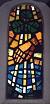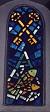the sun streams through the stained glass windows